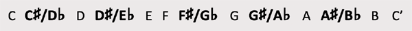 containing the chromatic notes which are shown here in upper case.