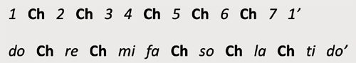 sequences shown below (in numbers and in solfege). Each "Ch" represents