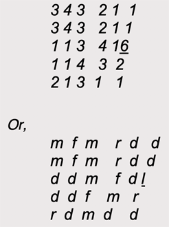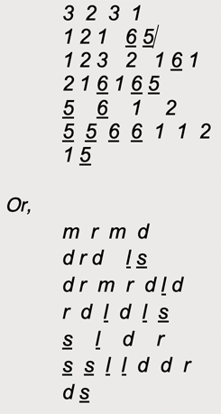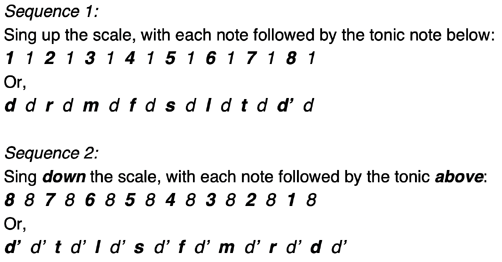 do do re mi fa, fa mi re do - an ascending scale sequence followed