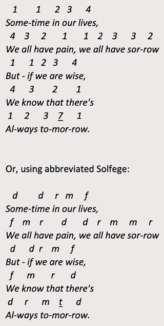 So for example, you can sing the major scale as: